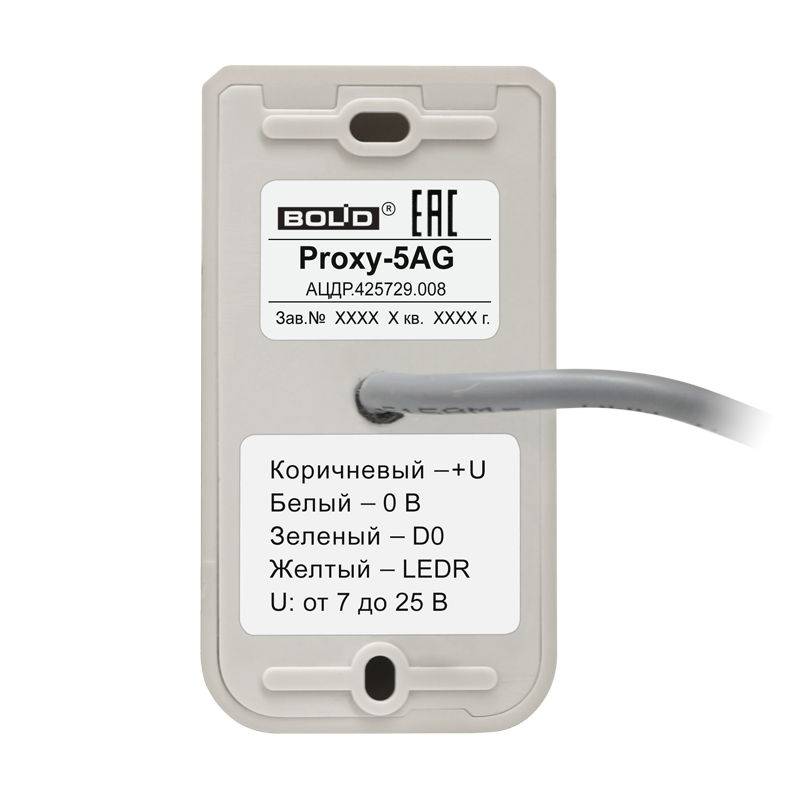 "Proxy-5AG", "Proxy-5AB" предназначены для считывания кода с идентификационных карточек и передачи его на приборы приемно-контрольные или контроллеры СКУД. В ИСО "Орион" используются для обеспечения процедур управления шлейфами и разделами охранно-пожарной сигнализации и идентификации пользователей в точках доступа СКУД.