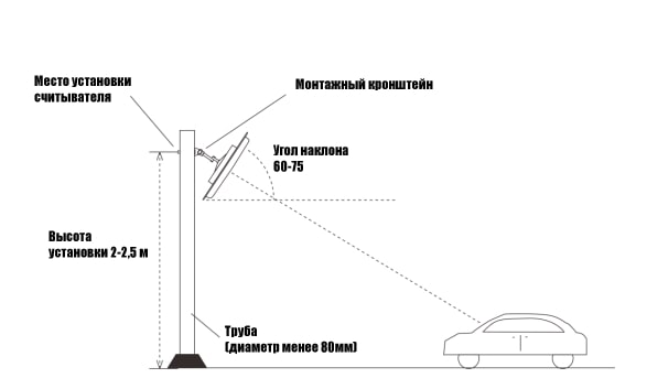 Схема установки UHF считывателя на стойке возле шлагбаума