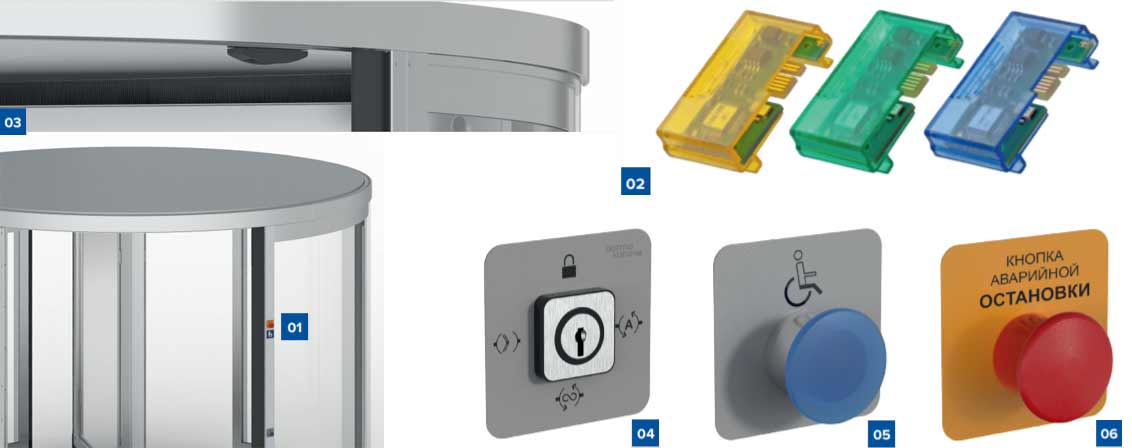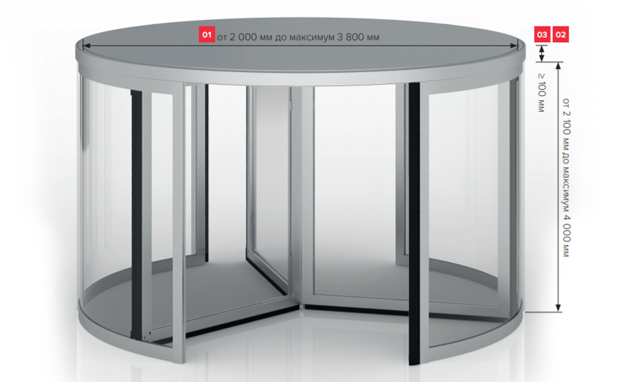 | Тип карусельной двери | большой ёмкости | большой ёмкости | стандартная | полностью стеклянная | индивидуальная | защитная |