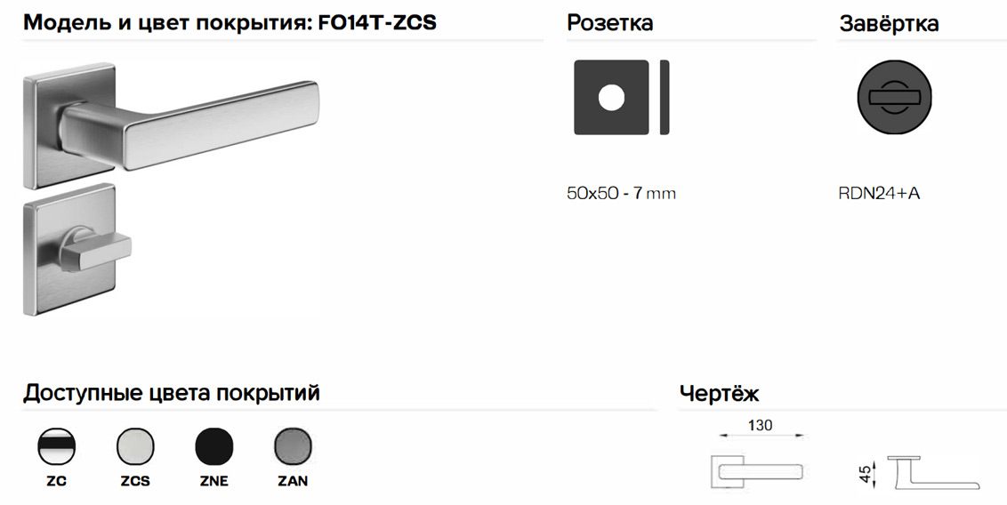• FO14T ZCS с сантехнической заверткой (без инд.), 38-55 мм, шп. 8 мм, матовый хром (8010803)