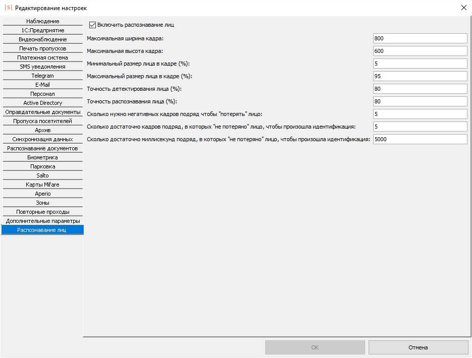 Дополнительные требования при использовании встроенной в Sigur функции распознавания лиц: