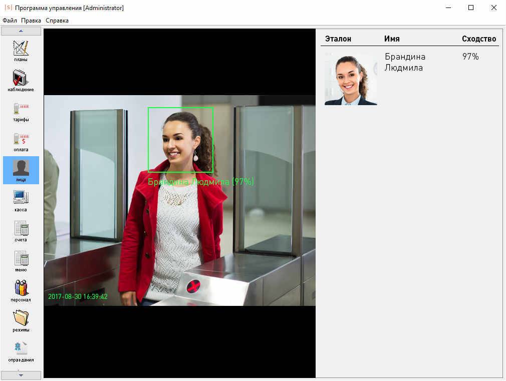 • «жестким»: после идентификации по основному признаку система производит сравнение изображения, полученного с камеры с фотографией сотрудника. В случае, если лицо не распознано или сотрудник не появился в кадре в течение 5 сек, система запрещает доступ.