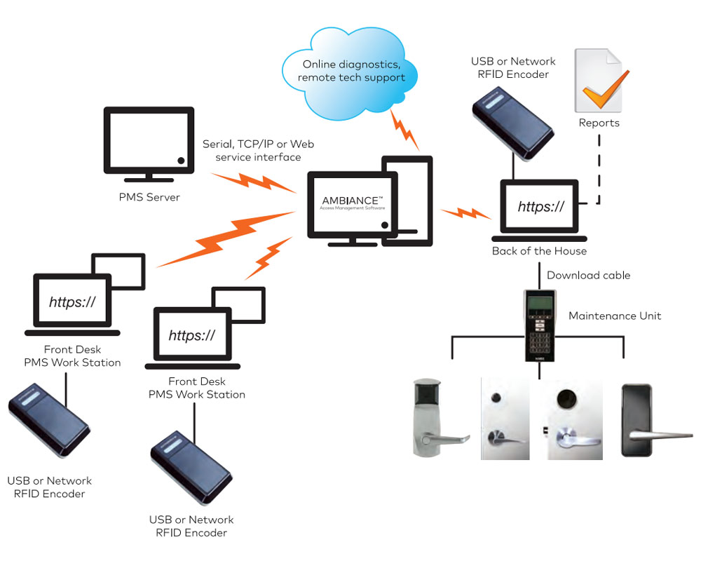 Веб-интерфейс, управление с помощью настраиваемых разрешений пользователя и защищенный доступ к системе позволяют пользователям Ambiance управлять уровнями гостевого доступа через собственную учетную запись или через систему управления собственностью (PMS).