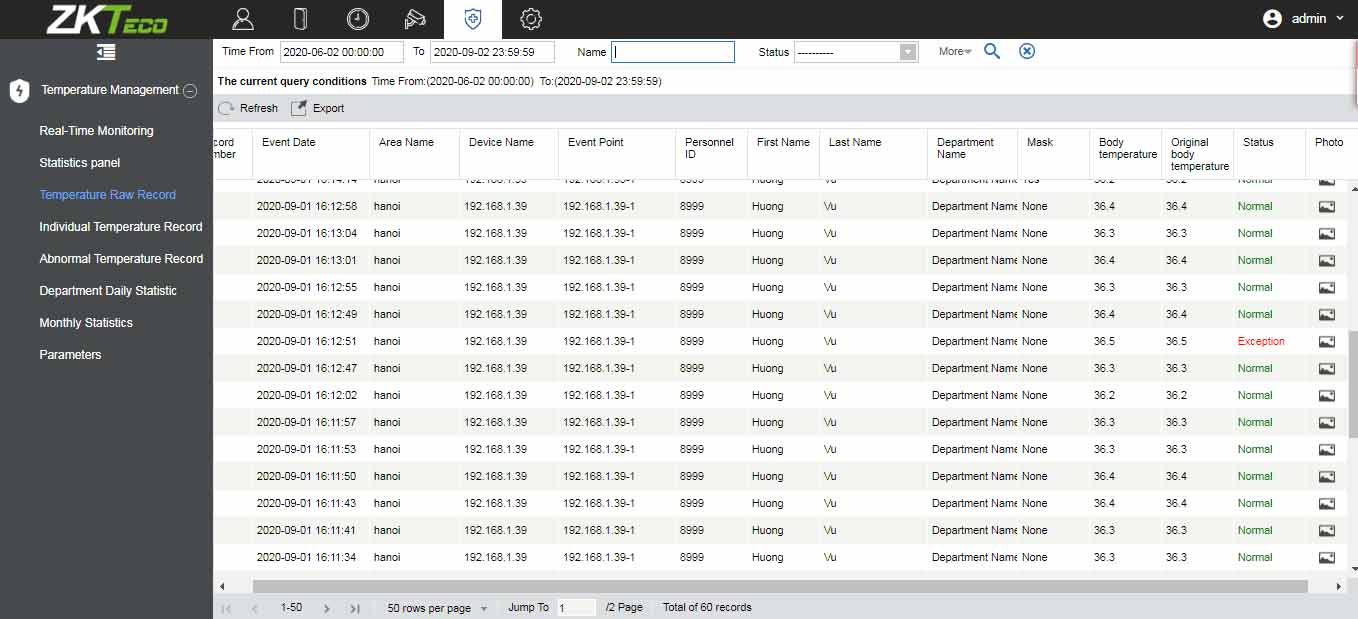 Модуль «Профилактика болезни» - предназначен для контроля температурных показателей, проверки наличия маски, а также позволяет отслеживать температурные события в реальном времени, формировать отчёты и настраивать их рассылку по электронной почте. Поддерживает основные модели терминалов обнаружения температуры тела и маски. Обеспечивает отзывчивое, интуитивно понятное, удобное веб-приложение для скрининга температуры тела в защищенных местах. В системе представлены различные форматы отчетов — персонал с повышенной температурой, персонал без надетой маски.