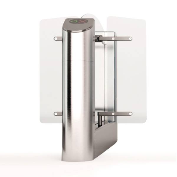 Корпус турникета выполнены из шлифованной нержавеющей стали, преграждающие створки – из закаленного стекла. Конструкция турникета имеет в своем составе интегрированный картоприемник. В нижней части модуля предусмотрена крышка основания для доступа к отверстиям для ввода кабелей БП, ПУ и СКУД.