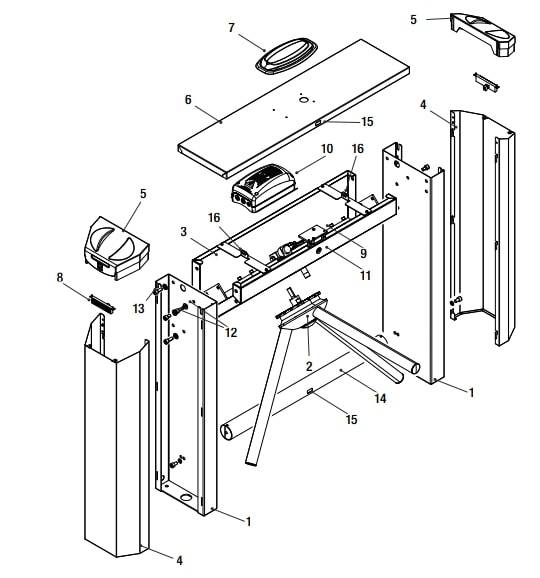 • В случае аварийного отключения электроэнергии турникет разблокируется в обоих направлениях, открывая проход.