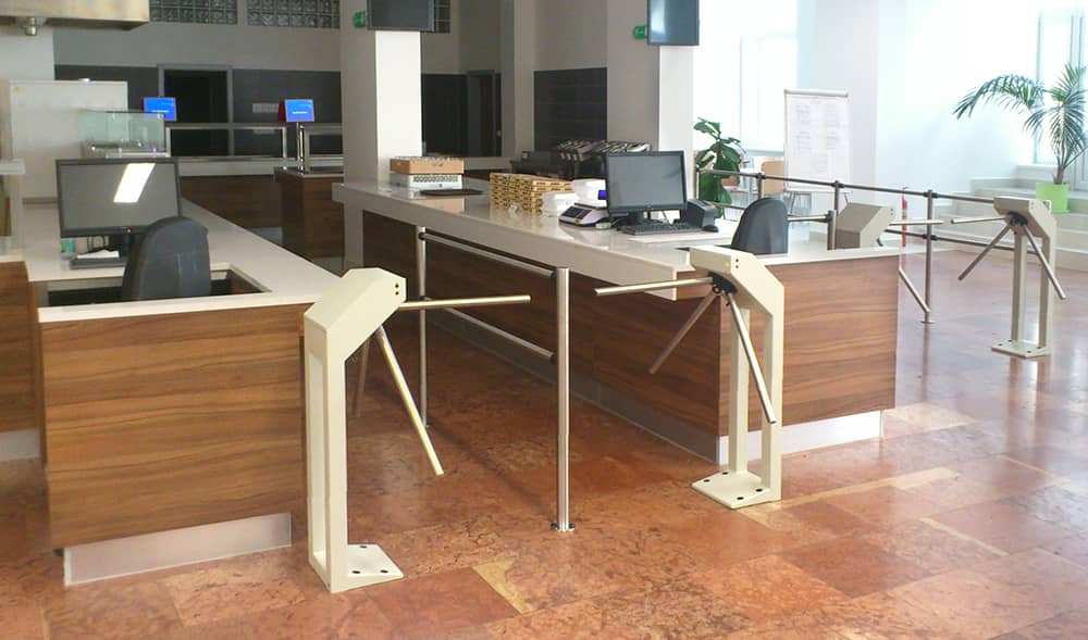 • В турникет встроен замок механической разблокировки, позволяющий, в случае необходимости, с помощью ключа разблокировать его (обеспечить свободное вращение преграждающих планок).