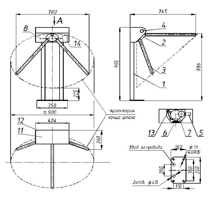 Турникет состоит из следующих частей: