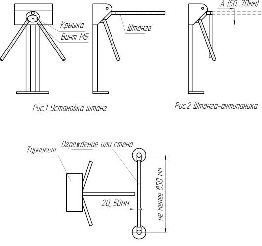 - рывки и удары по преграждающим штангам, стойке турникета и индикаторам, так как возможно их механическое повреждение и деформация, а также возможен преждевременный выход из строя механизма турникета.