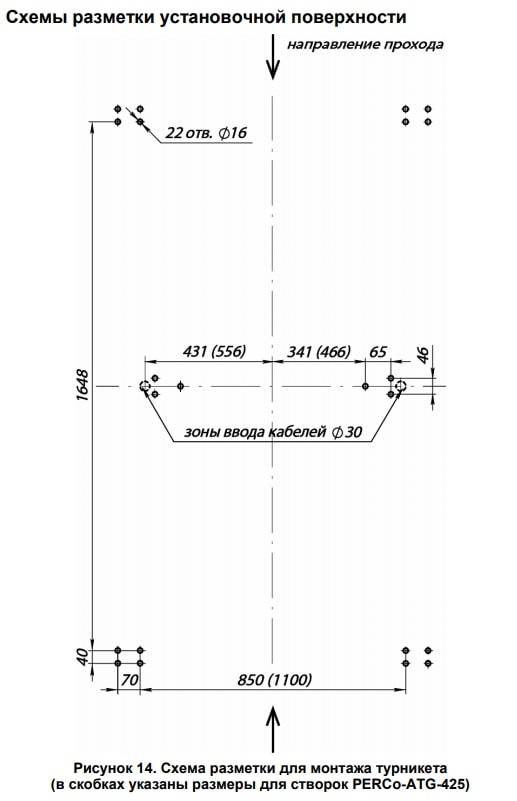 - со створкой PERCo-ATG-300, PERCo-ATG-300H: 650