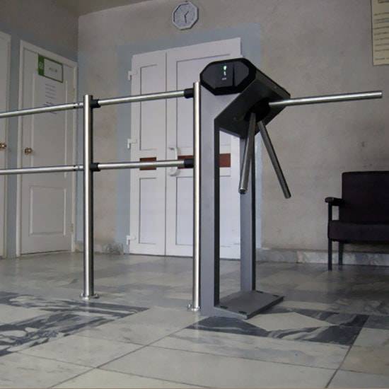 Встроенный замок механической разблокировки позволяет открыть турникет с помощью ключа, обеспечив свободное вращение преграждающих планок в обоих направлениях.