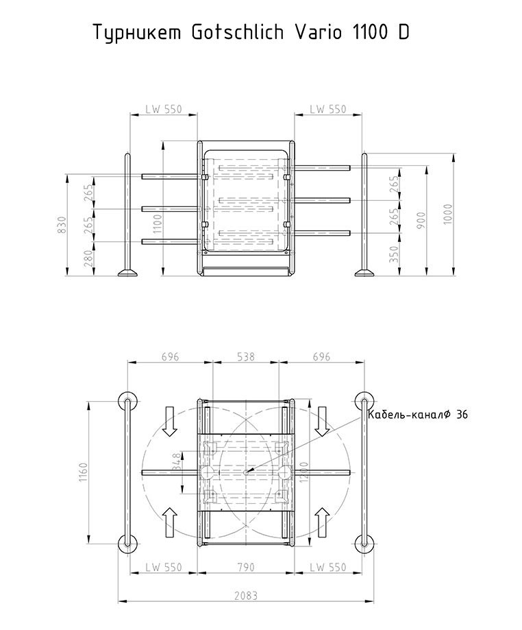 Тип корпуса турникета | Двухпроходной, Напольный |