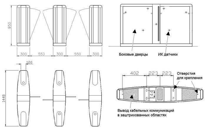 • Контроль прохода осуществляется 6 инфракрасными датчиками у НЗ турникета и 14 датчиками у НО турникета