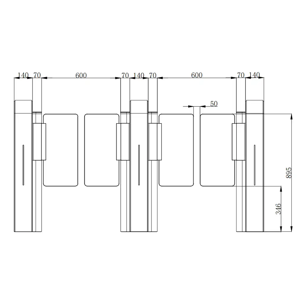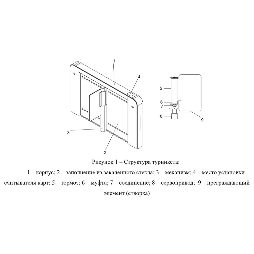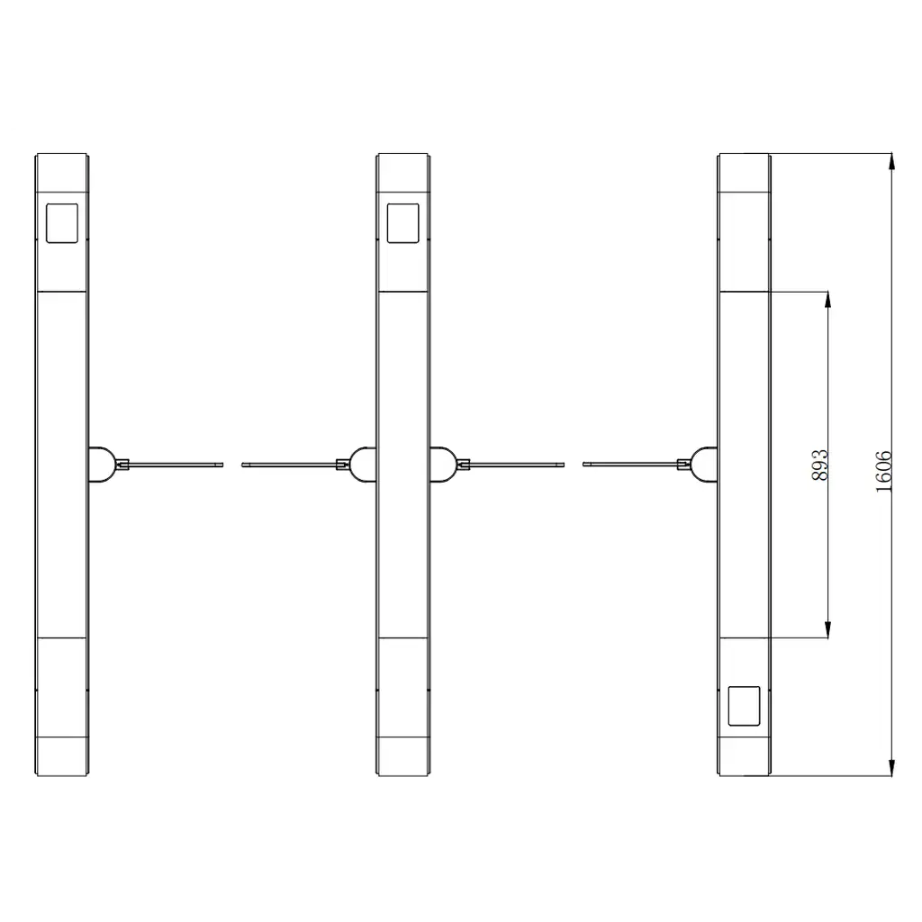 - Створки турникета автоматически разблокируются при отключении питания, что соответствует требованиям пожарной безопасности;