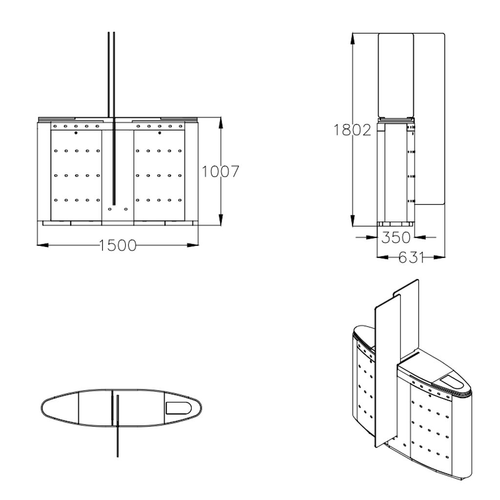 - AV.SL.6992-D-900: ширина прохода – 900 мм, центральный модуль, высота – 1007мм, длина - 1500мм.