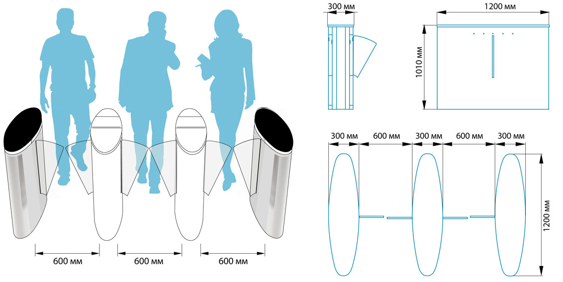 Чаще всего раздвижные турникеты имеют достаточно широкую тумбу, за счет чего преграждающие створки полностью задвигаются внутрь тумбы, освобождая проход. Благодаря наличию автоматической функции «Антипаника» обеспечивается дополнительная безопасность для пользователей. Если сработала пожарная система безопасности, произошел сбой электричества или поступил сигнал от сотрудника охраны - створки турникета автоматически открываются для прохода потока людей.