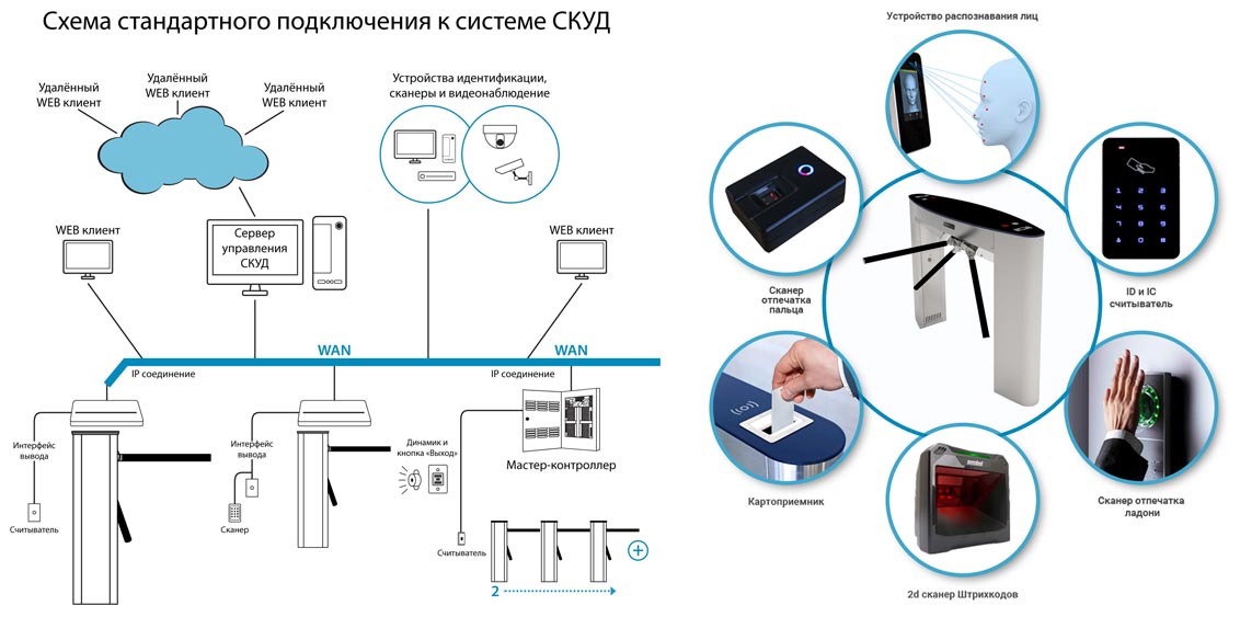 Турникет ТМБ 1100 торговой марки БЛОКПОСТ можно оснастить устройствами идентификации пользователя: идентификатором лица, сканером отпечатка ладони/пальца, считывателем штрих-кода, картоприёмником. Контактный считыватель карт входит в базовую комплектацию турникета. Организация проходных с использованием устройств идентификации позволит наиболее быстро и точно определить возможность допуска человека через досмотровую зону без участия сотрудников охранной системы.