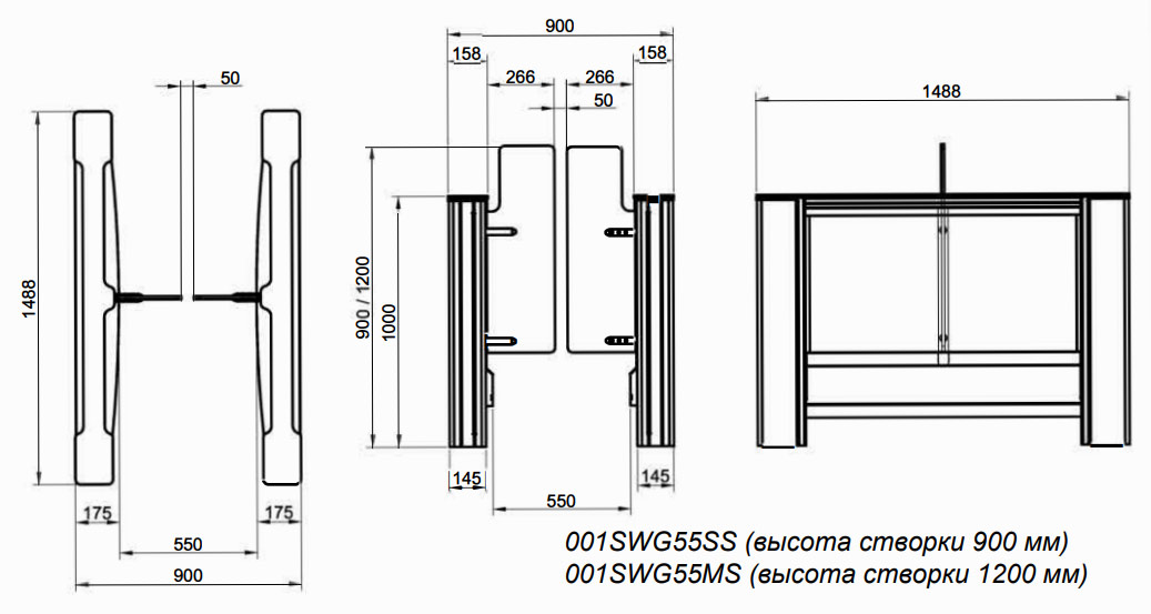 • SWG55 - ширина прохода 550 мм, скорость открытия створок 0.5 секунды, заводские настройки
