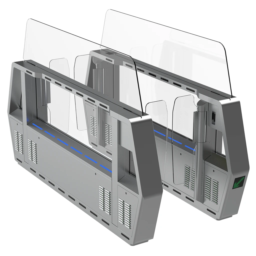 Корпус выполнен из шлифованной нержавеющей стали SUS304, створки изготовлены из акрила, что придает конструкции прочность и современный внешний вид. Турникет работает на базе сервопривода и поддерживает интерфейсы RS485 и сухих контактов, что упрощает интеграцию в существующие системы контроля доступа. Наработка на отказ до 30 миллионов циклов гарантирует высокую надежность и стабильность работы.