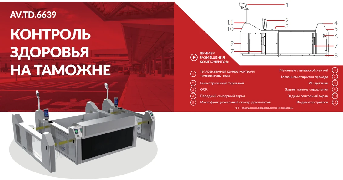 Шлюзовой турникет Avix E-gate AV.TD.6639 — это шлюзовое решение для таможенного контроля, оснащенное встроенной тепловизионной камерой. Устройство обеспечивает автоматический контроль состояния здоровья прибывающих пассажиров, включая замер температуры тела в потоке. Таким образом, турникет одновременно выполняет функции обеспечения безопасности и санитарного контроля, что особенно актуально для аэропортов и международных вокзалов. Автоматизация процесса позволяет ускорить прохождение контроля и снизить нагрузку на персонал.