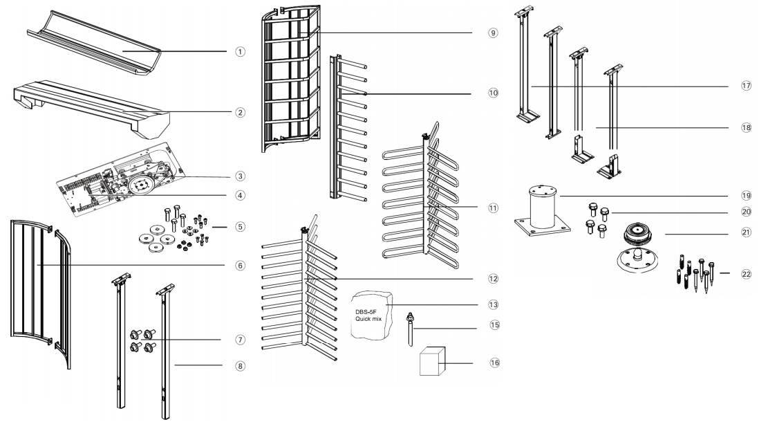 • Центральная колонна со штангами: Нержавеющая сталь зеркальной полировки;