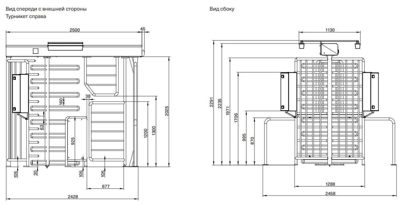 • Размеры турникета: 2500 x 2458 x 2235 мм