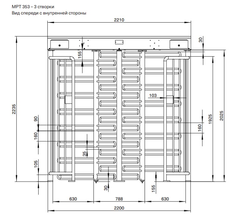 • Размеры турникета: 2210 x 1318 x 2235 мм
