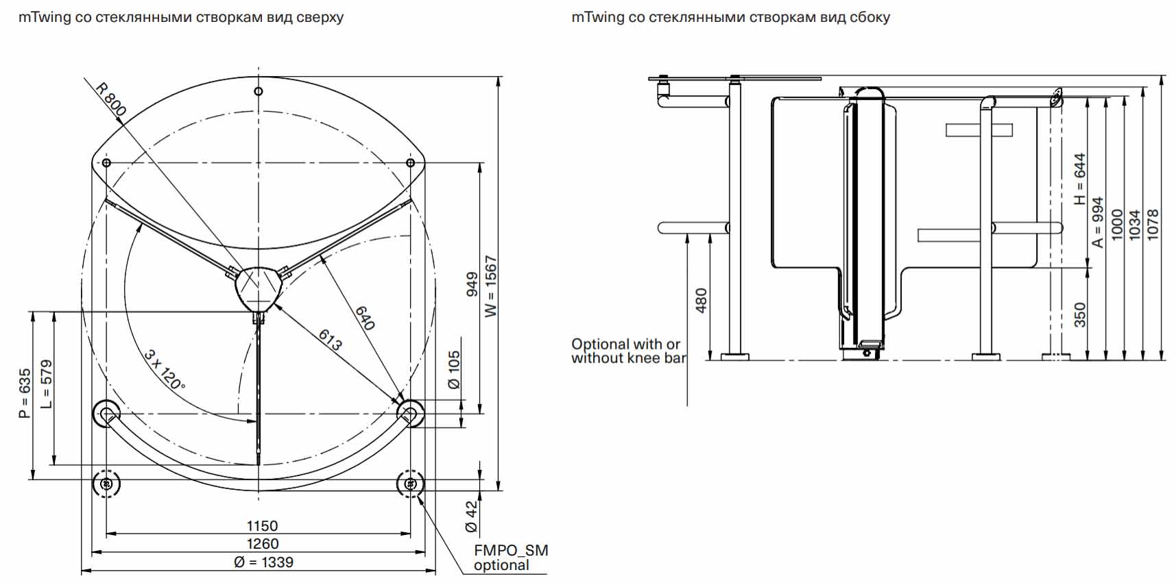 • FMTW_MU - Полуростовой роторный турникет FlowMotion® mTwing для металлических створок (без створок)