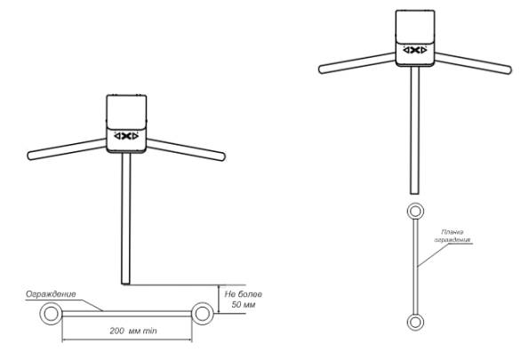 Средняя планка может быть отклонена от исходного положения на небольшой угол 6 градусов. При отклонении планки стопор, не даст провернуть планку для совершения прохода.