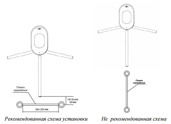 При установке турникета необходимо учесть возможный свободный ход планки, в режиме STOP,он составляет по 9,5 градуса в каждую