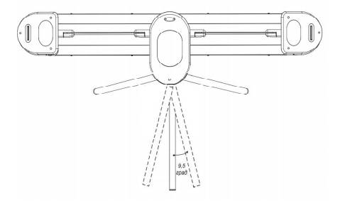 При установке турникета необходимо учесть возможный свободный ход планки, в режиме STOP,он составляет по 9,5 градуса в каждую сторону.