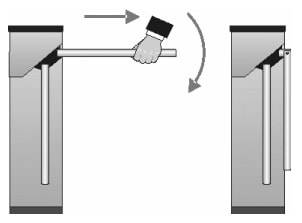 Функция механической разблокировки обеспечивает свободное вращение преграждающих планок в обоих направлениях. Замок механической разблокировки встроен в стойку турникета и снабжён комплектом ключей. Электронная проходная может комплектоваться механическими планками «Антипаника», которые также позволяют быстро освободить проход.