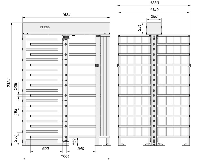 - монтажная рама PERCo-RF16 (поставляется опционально)