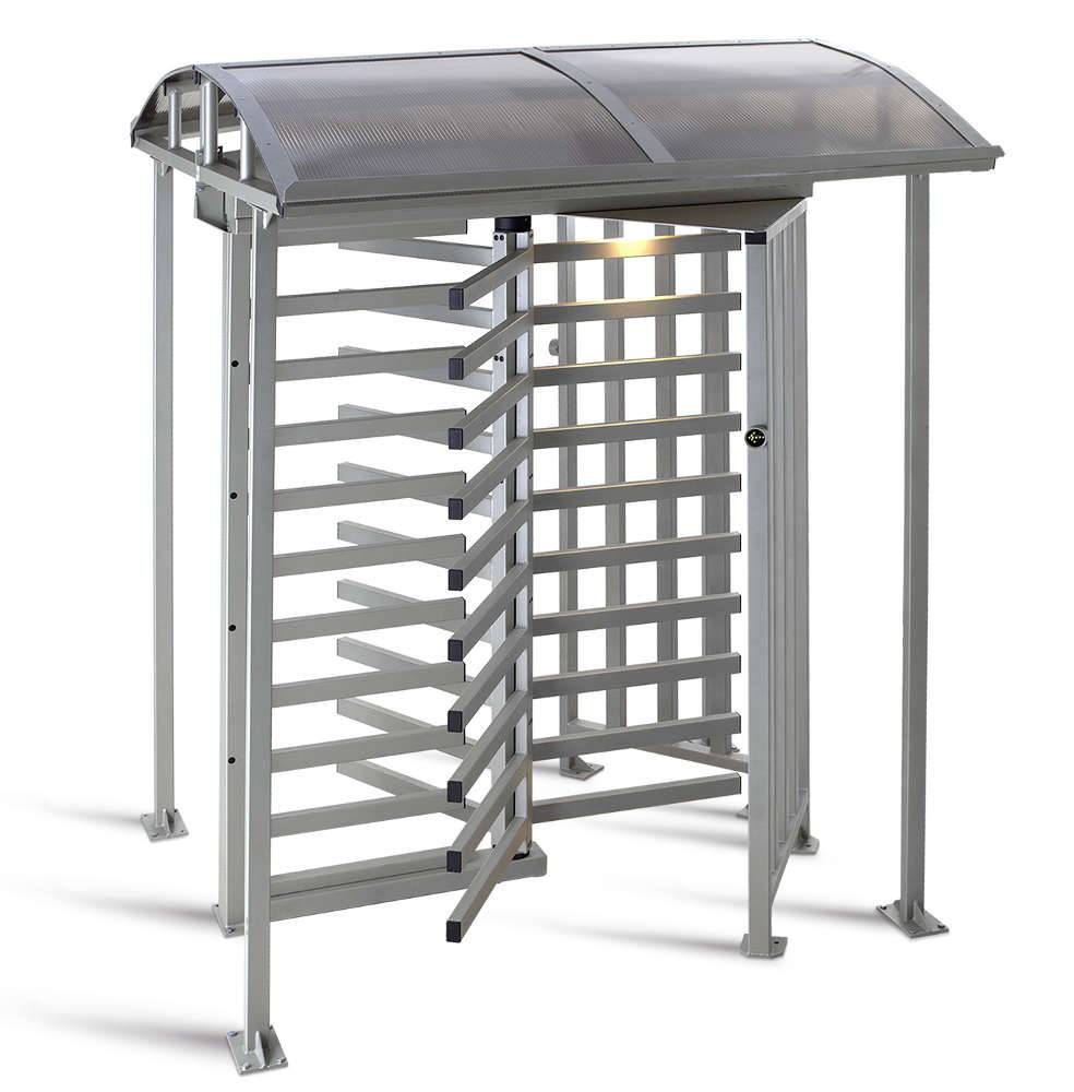 Дополнительная защита турникета от атмосферных осадков и попыток проникновения через его верх, достигается опциональной установкой крыши, соединяемой с турникетом в единую конструкцию.