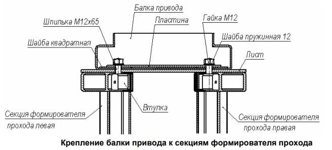 Балка закрывается сверху крышкой (9), которая фиксируется с каждого торца балки двумя винтами (10) с шайбами.