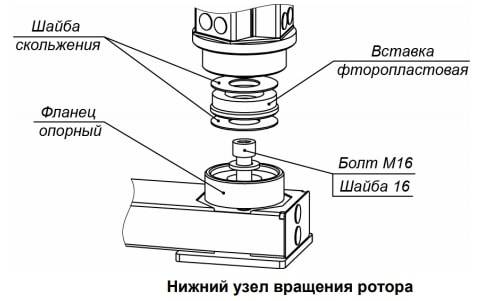 Стойка с преграждающими планками (5) включает в себя ряд преграждающих планок, фланец и нижний узел вращения (3), в который устанавливается нижняя часть ротора (1). Стойка с преграждающими планками поставляется в собранном виде и крепится к установочной поверхности через четыре монтажных отверстия во фланце и одно монтажное отверстие внутри узла вращения.