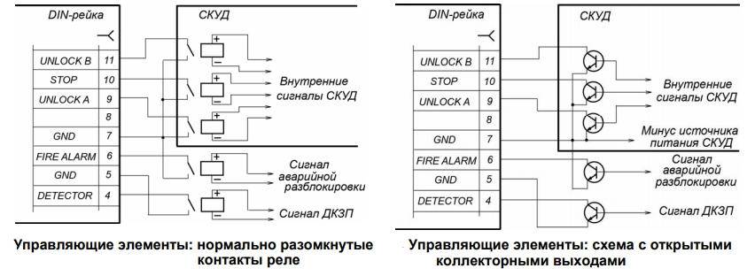 При управлении от СКУД турникет поддерживает два режима управления – импульсный и потенциальный. Обеспечивается гальваническая развязка выходов турникета от контроллера СКУД.