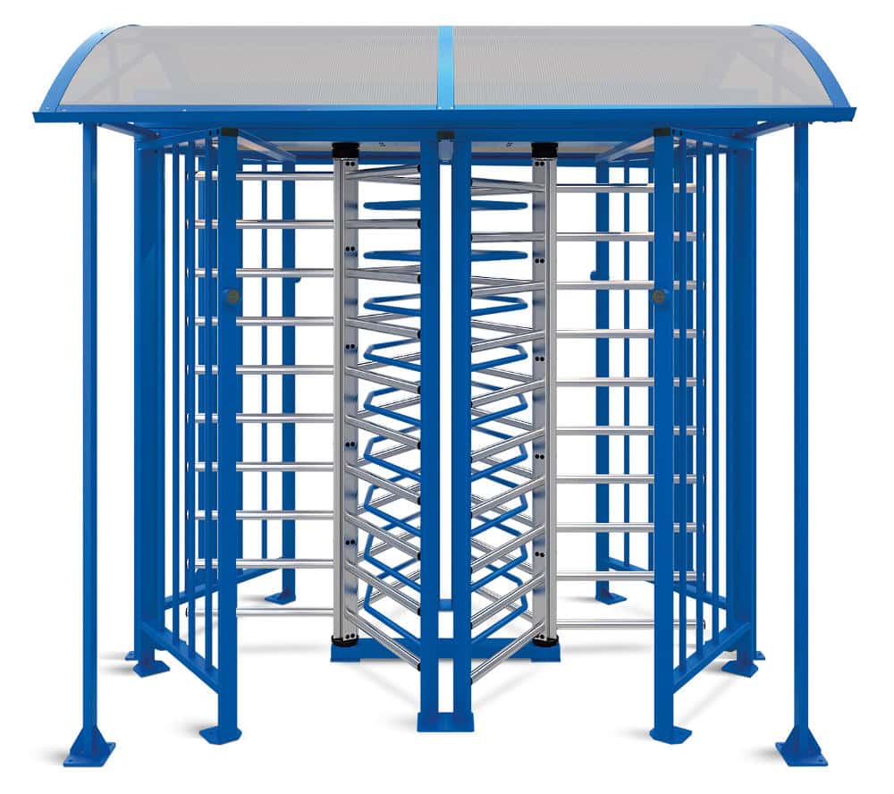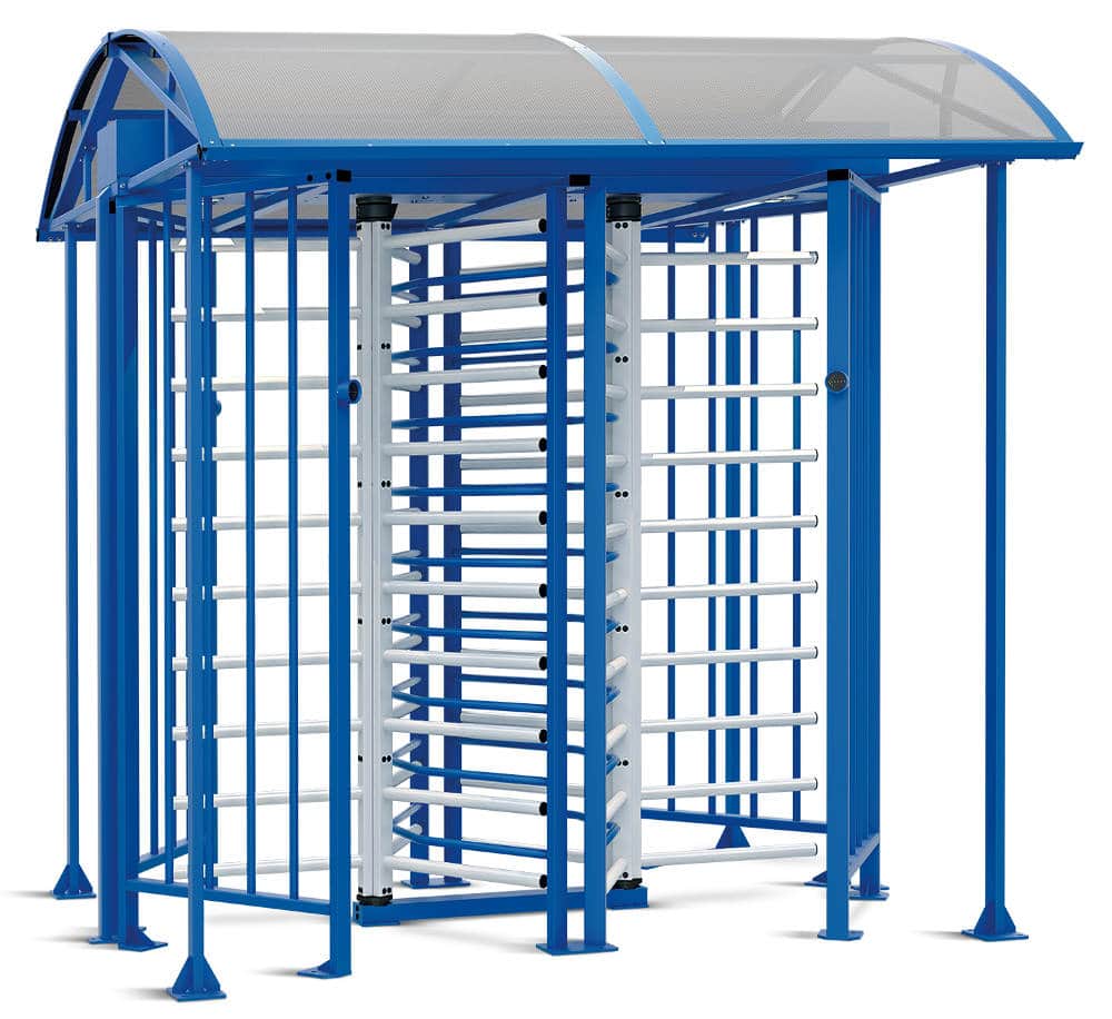 Дополнительная защита турникета от атмосферных осадков и попыток проникновения через его верх достигается опциональной установкой крыши, соединяемой с турникетом в единую конструкцию (поставляется отдельно).
