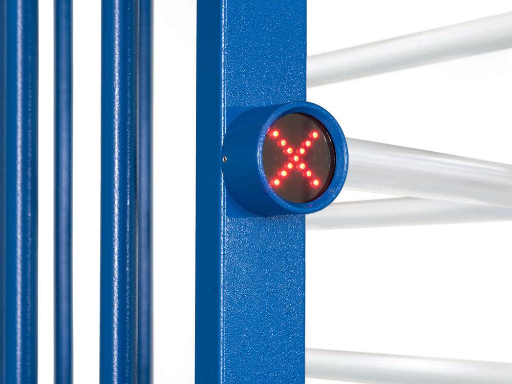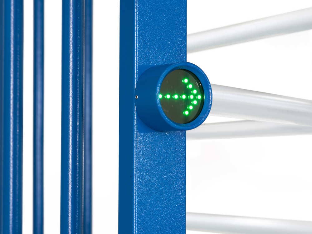 • Турникет имеет встроенные светодиодные индикаторы режима работы обоих направлений для каждого исполнительного устройства турникета, также имеется возможность подключения дополнительных выносных световых индикаторов.