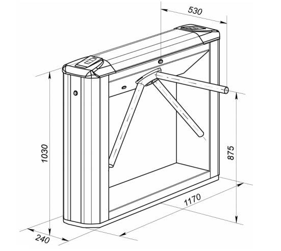 • Габаритные размеры турникета (длина × ширина × высота), мм: