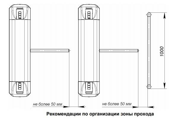 • При установке в ряд нескольких турникетов их стойки формируют зону прохода, позволяя обойтись без установки дополнительных ограждений.
