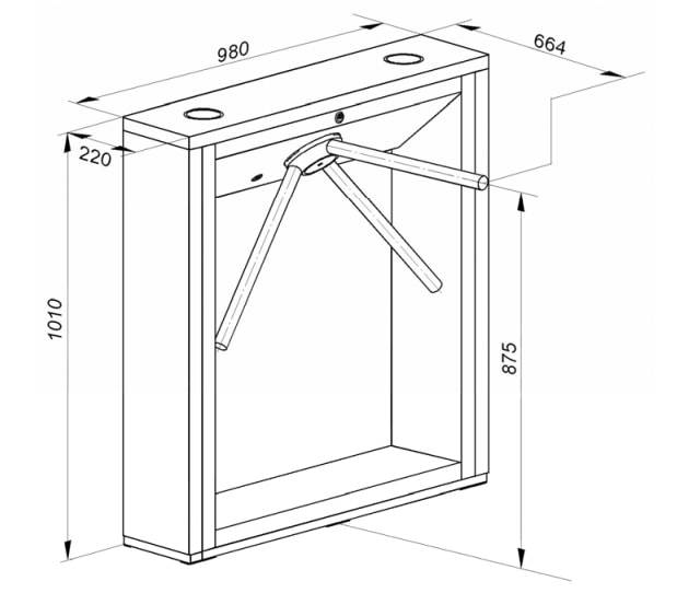 • Габаритные размеры турникета (длина × ширина × высота), мм: