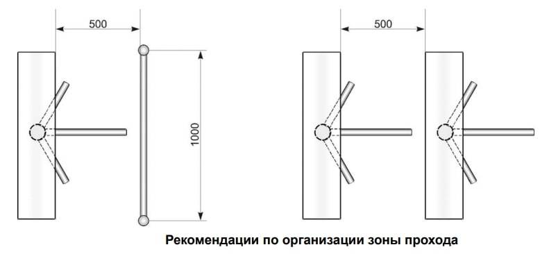 • При установке в ряд нескольких турникетов их корпуса формируют зону прохода, позволяя обойтись без установки дополнительных ограждений.