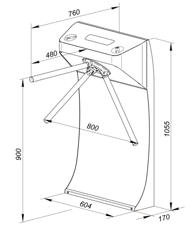 • Габаритные размеры с поднятой преграждающей планкой: 800×760×1055 мм