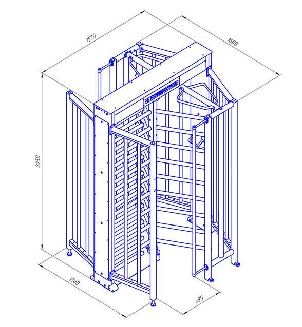Тип турникета - полноростовый шлюзовый роторный однопроходной трехлопастной для прохода в двух направлениях, нормально открытый с режимом пропуска одного человека по пропуску по идентификатору личности или от пульта охранника. Для запирания турникета при отсутствии питания предусмотрена блокировка турникета с помощью ключа.