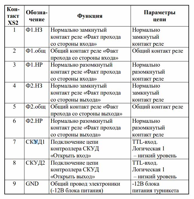 Подключение турникета к контроллерам СКУД осуществляется в соответствии с табл.3 через разъем ХS2 модуля IB v1.1.