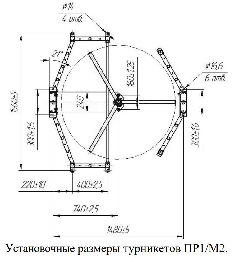 Турникет рекомендуется устанавливать на горизонтальный бетонный фундамент размером 1700х1700 мм. Толщина фундамента не менее 100 мм. Допускается вместо сплошного фундамента уснавливать в местах крепления бетонные столбики сечением 200х200 и глубиной не менее 300 мм.