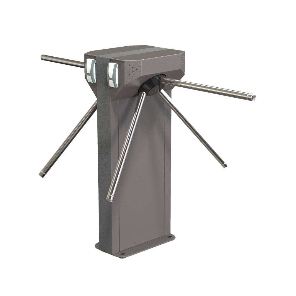 • Цена двухпроходного турникета ниже, чем двух одинарных турникетов и он занимает меньше места. Передняя часть кожуха выполнена граненой; стойка широкая с двумя съемными панелями, за которыми при необходимости можно поместить дополнительные элементы, например платы СКУД. Турникет снабжается одним или двумя пультами дистанционного управления