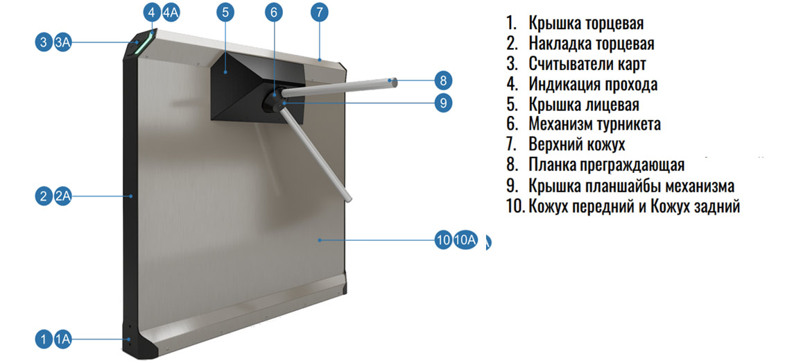 Тип корпуса турникета | Однопроходной, Тумбовый, Напольный |