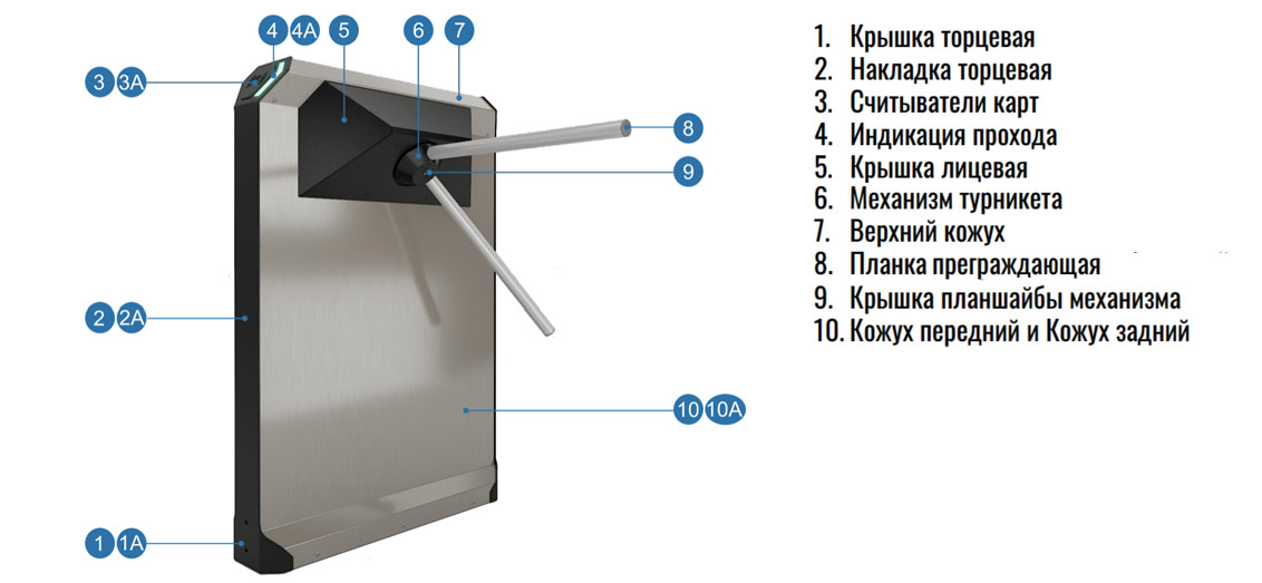 • Датчики поворота преграждающих планок, фиксирующие факт и направление прохода.